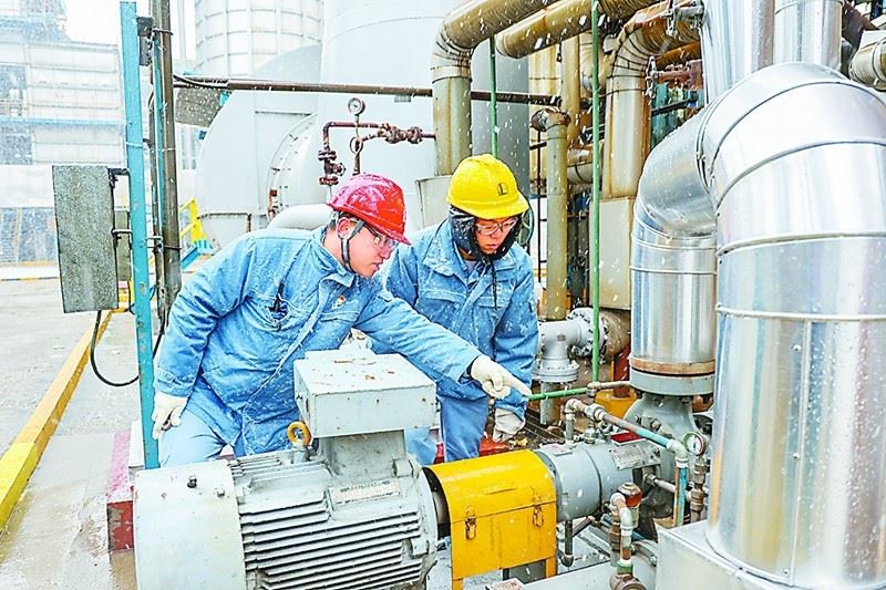 2月21日,扬子石化芳烃厂加强装置巡检,开展防冻保温大排查。李树鹏 摄 王堂超 文