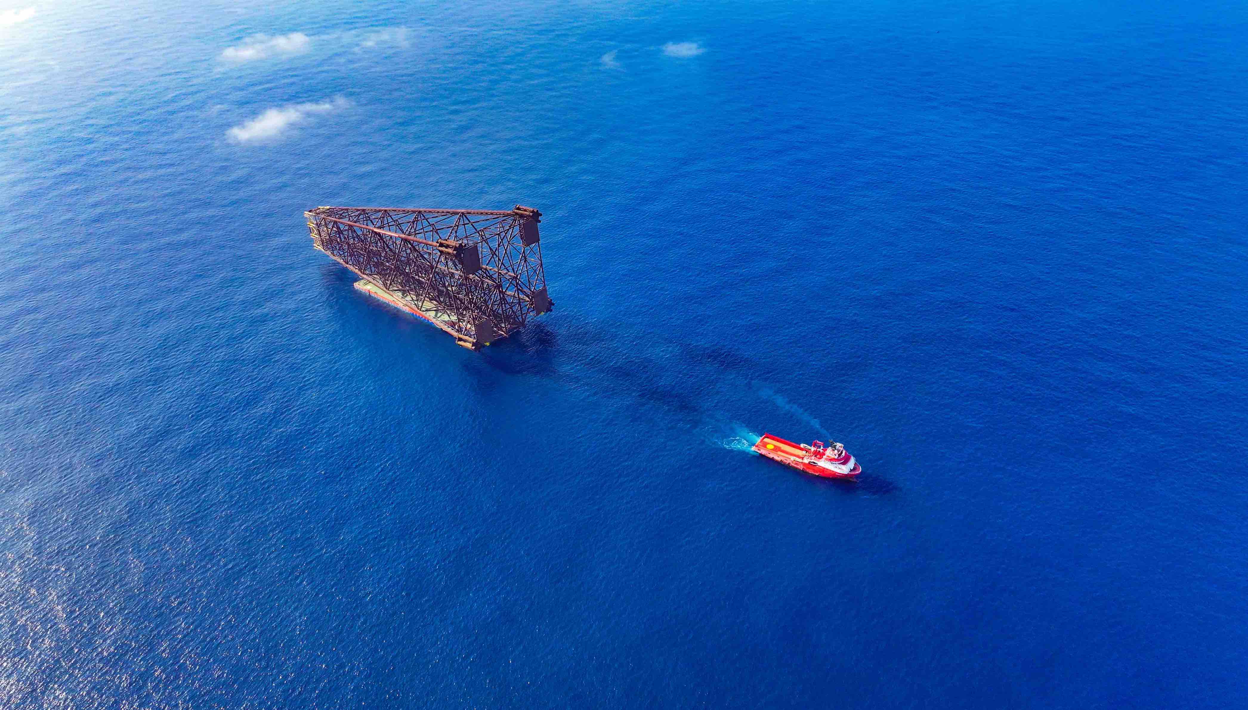 由于“海基二号”的巨大吨位超过世界最大起重船的吊装能力,此次海上安装采用滑移下水方式进行。中国海油深圳分公司流花油田开发项目组总经理刘华祥介绍,这种方式是利用导管架自身重力并配合液压千斤顶助推,使导管架从驳船平稳地滑入海中,再通过导管架注水和起重船辅助相结合的方式,实现扶正坐底和精准就位。