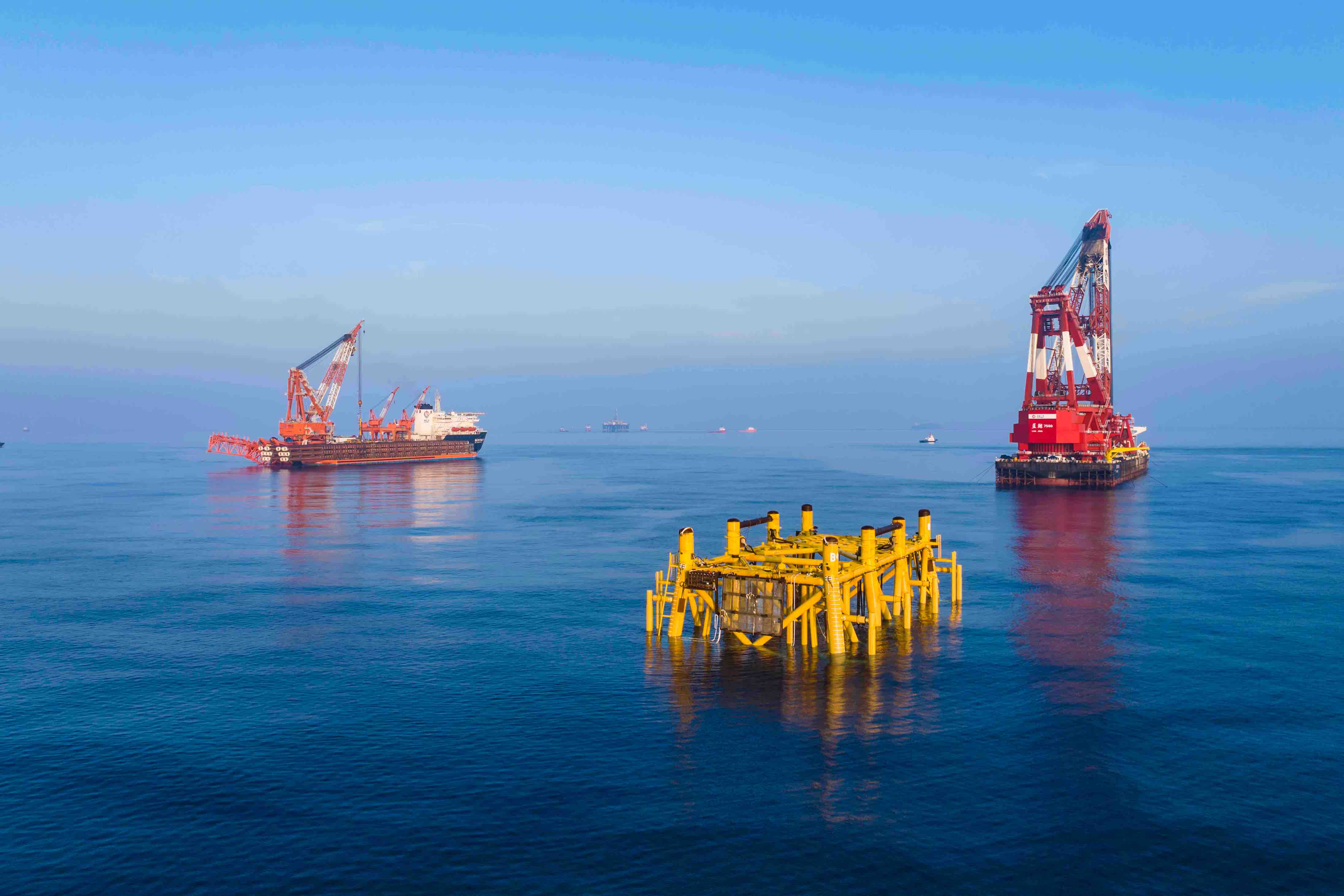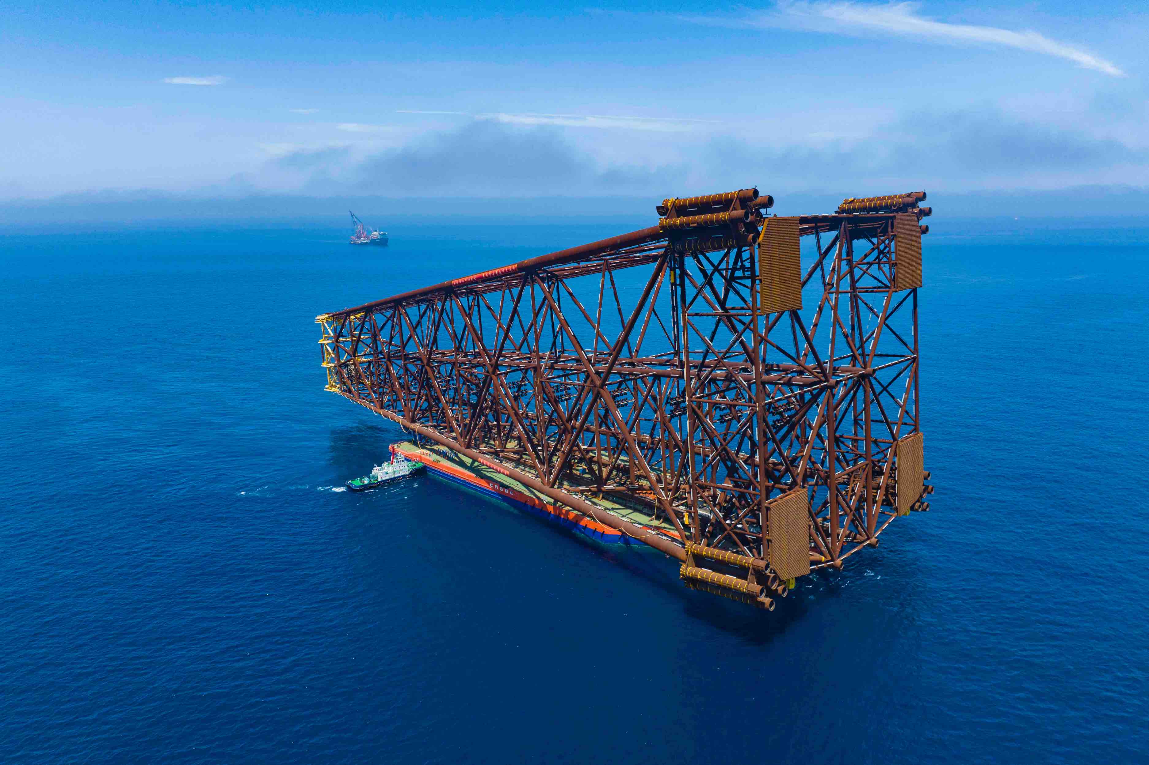 导管架平台是全球应用最广泛的海洋油气生产设施,导管架相当于“地基”,用于支撑海上油气平台的庞大身躯与巨大吨位。“海基二号”导管架总高338.5米,超过北京国贸三期主楼高度,总重近37000吨,用钢量接近“鸟巢”国家体育场,是亚洲高度最高、重量最大的导管架。