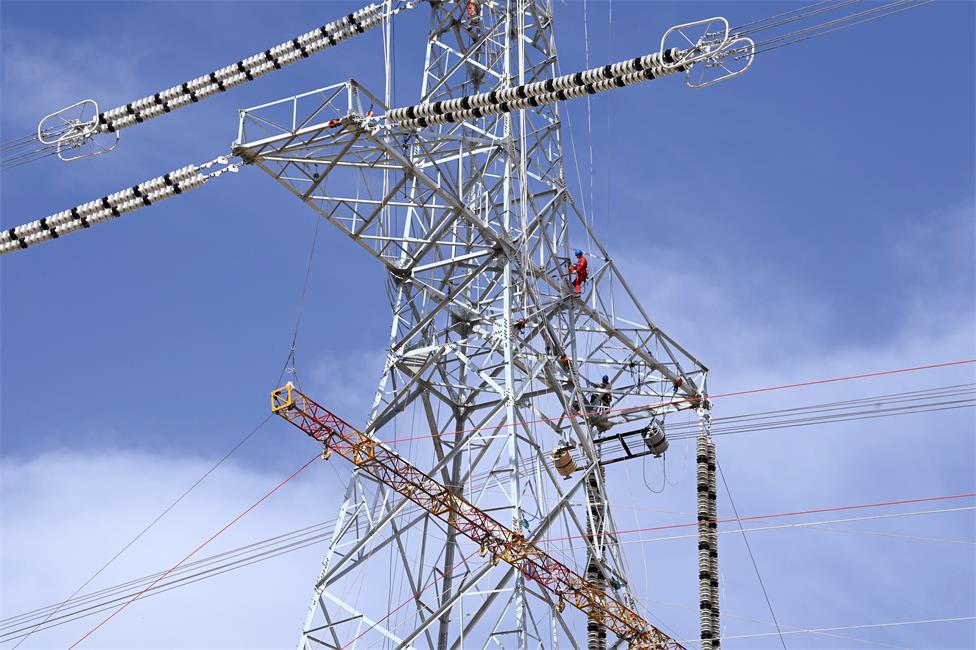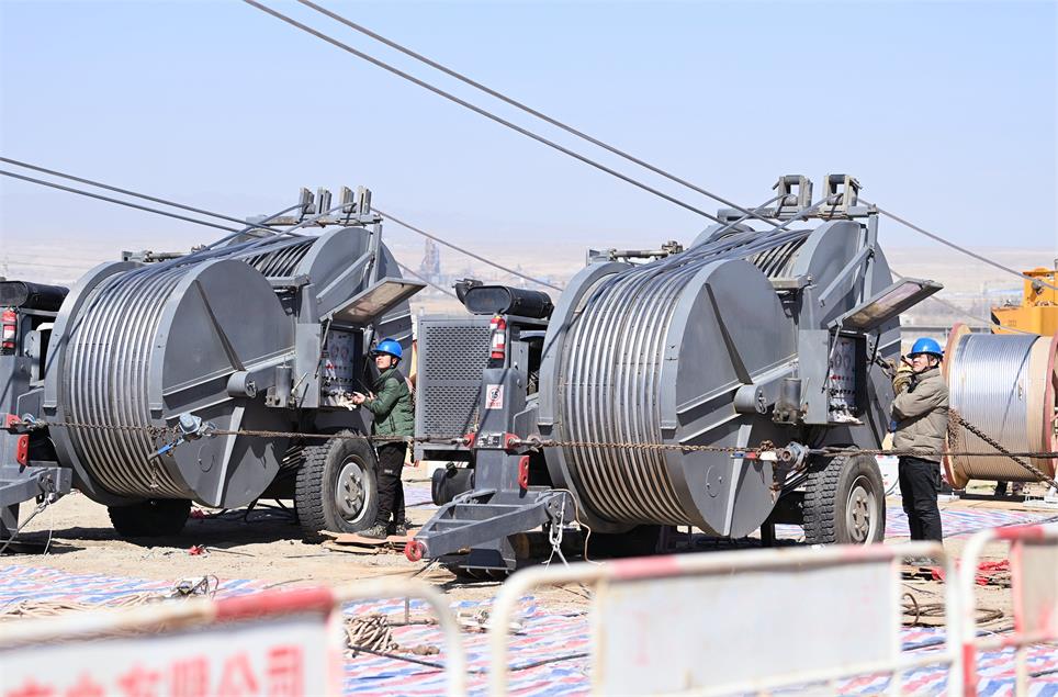 3月27日,在新疆库尔勒荒山峡谷的巴州—铁干里克—若羌750千伏输电线路工程建设现场,随着牵引机的轰鸣,输电线路跨越作业正如火如荼地进行着。截至目前,新疆10项超特高压电网建设工程已全面复工,复工时间较历年提前近一个月。