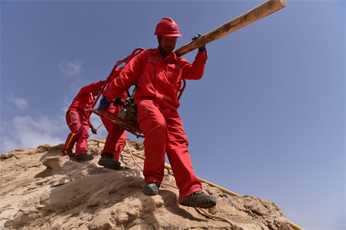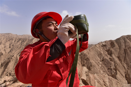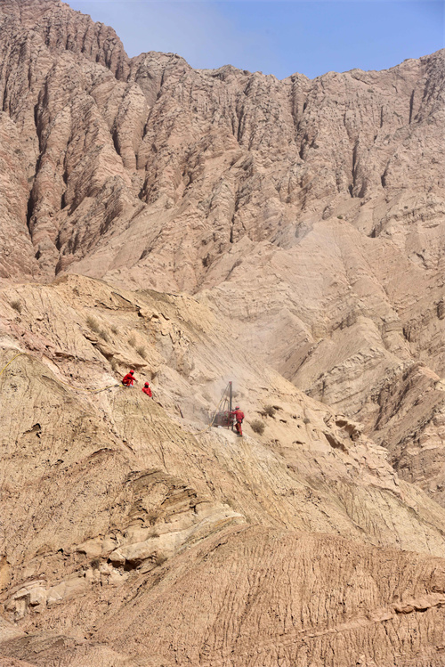 “两个钻井机组的人员集中在一起,修整道路、搬迁钻机……这样一来,安全生产更有保障,钻井作业效率也得到大幅提升。”贾代超指着悬挂在峭壁上用于攀爬的保险绳说,“不相互帮助,在这种地形背油送水上山将非常困难。”在提高效率的同时,他们强化质量控制,采取严格的工序自证措施。一是在设计井深的基础上适当多打一点,并吹尽沉沙。二是利用视频记录下井钻具数量和完钻自检过程。三是组织工序质检人员到现场抽检部分井位。“放心吧!我们的井深质量保证没问题。”贺道富的嘴角微微上翘,愉悦地说。