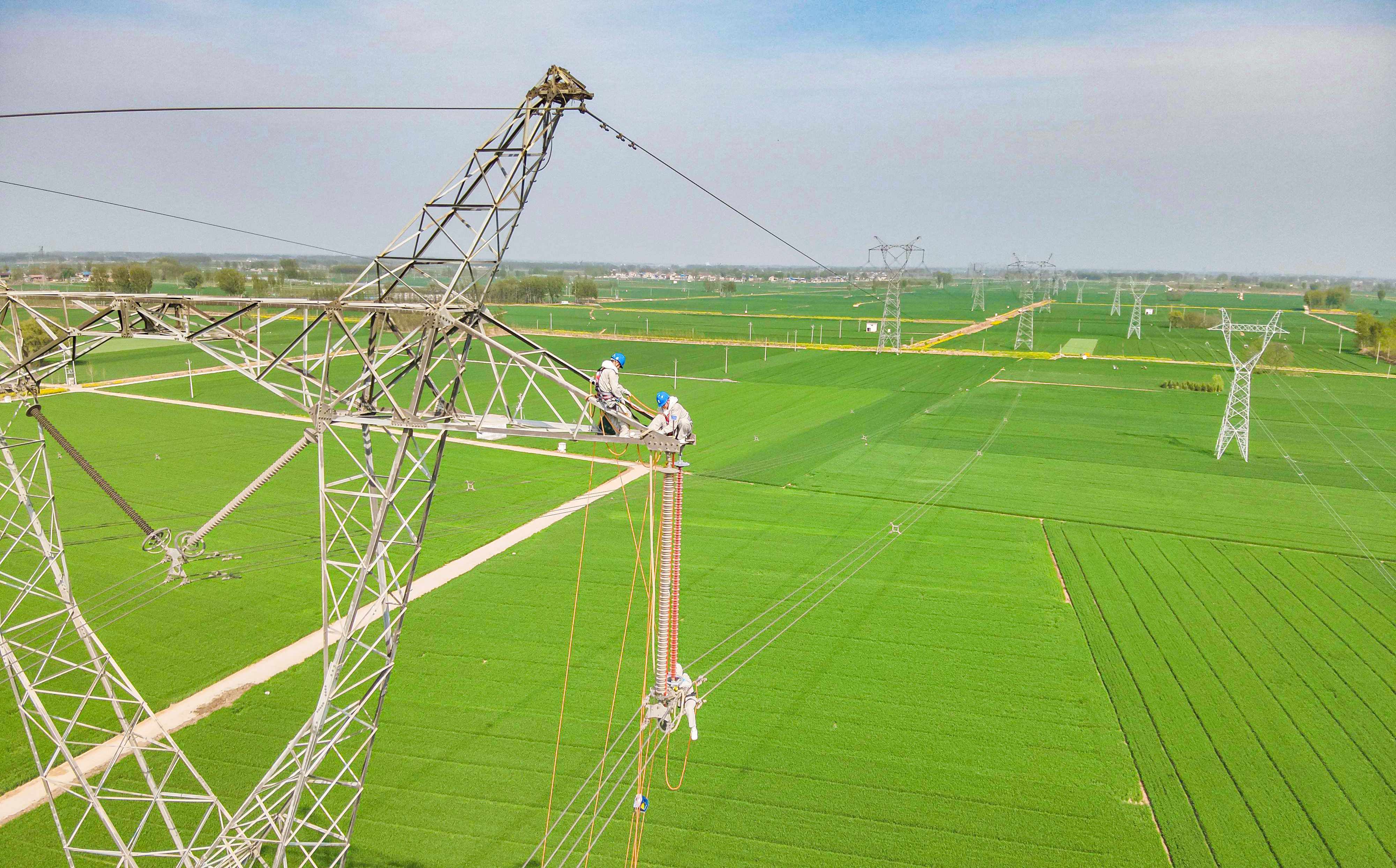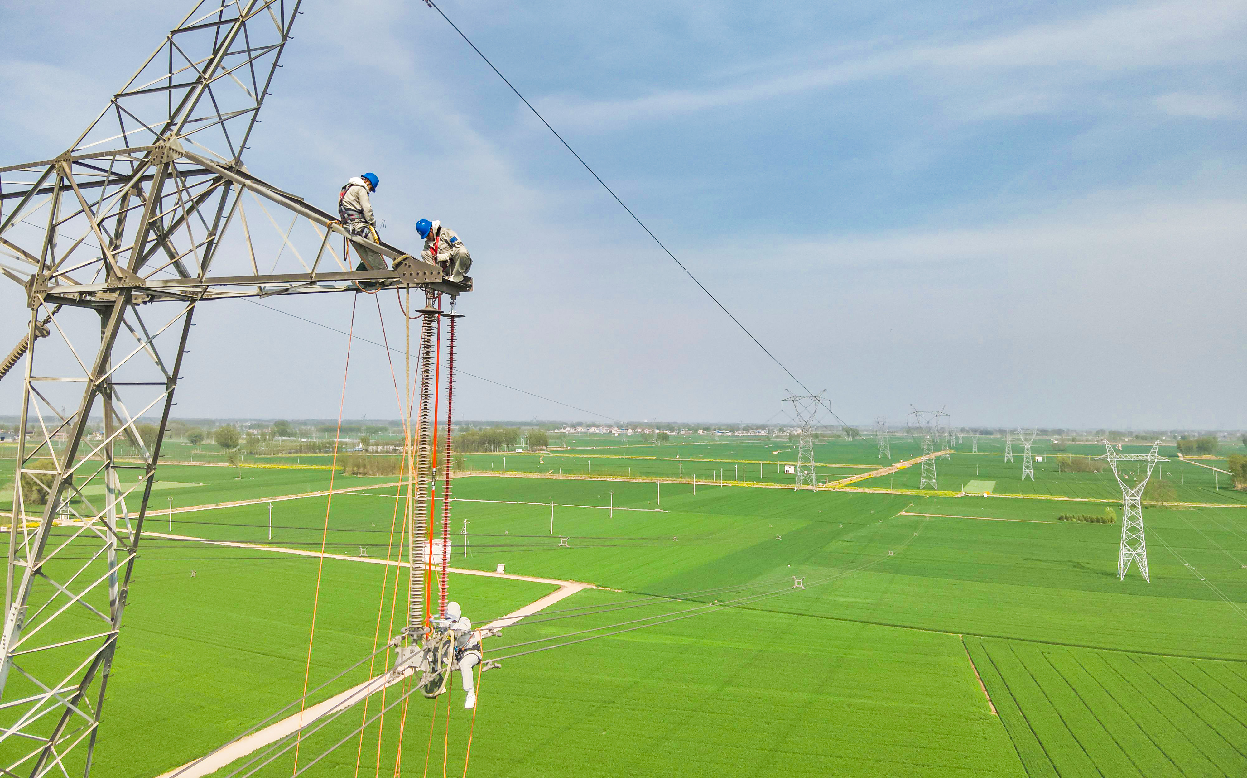 中国能源新闻网讯(韩旭)4月11日,在河南省延津县500千伏祥塔Ⅰ线春检现场,国网河南超高压公司员工开展带电作业更换发热复合绝缘子,作业人员利用“电动升降装置”进入等电位,历时3小时消除线路缺陷,保障线路安全稳定运行。
