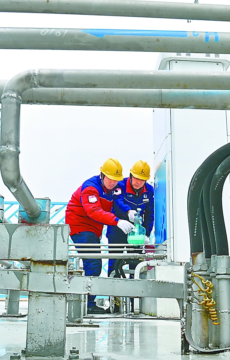 芜湖石油安全人员检查加氢设备运行情况。