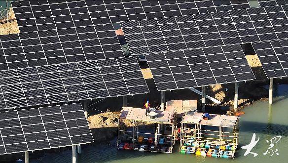 该项目主要是以采煤塌陷区的坑塘水面为主体进行建设。上层水面用于发电,下层用于水产养殖,让昔日的采煤塌陷区焕发新光彩,不仅极大提高了单位面积的经济产出,塌陷区的水体也得到了净化。