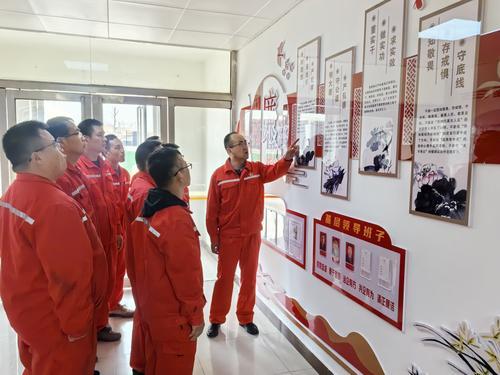 华北油气分公司采油一厂采油管理六区党支部在办公基地打造廉洁文化墙,开设“警示案例教育”专栏。通过漫画说纪、权威解读、案例解说等方式,学习《中国共产党纪律处分条例》《中国共产党廉洁自律准则》等内容,教育引导党员干部形成遵规守纪的自觉。图为4月16日,该党支部党员在廉洁文化墙前学习。(刘 军 )