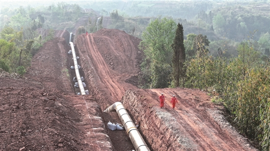 川气东送二线天然气管道工程是我国“十四五”重大能源基础设施工程,建成后我国将再添一条“横跨东西”的油气能源大动脉。管道局承建的川气东送二线天然气管道工程川渝鄂段(威远/泸县—铜梁)线路施工第二标段管道,线路全长110.79千米,位于川南地区,地质条件复杂,山脉河流众多。