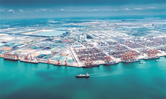 图为4月23日,广西石化在钦州港向国内、国际市场发运航煤。