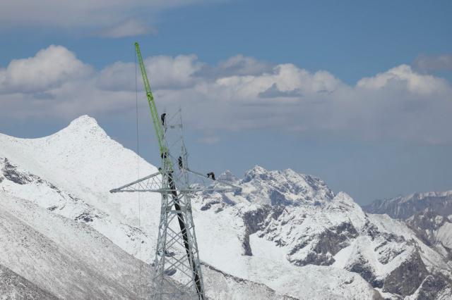 和田县稀有金属矿产业园区220千伏输变电工程正值攻坚阶段,国网新疆电力有限公司施工人员在高海拔山区开展组塔、架线等工作。该工程总投资约5.86亿元,于2023年2月开建,输电线路全长约210公里,跨越戈壁、沙漠、高山等,地势险要、环境恶劣。工程预计今年6月底完工,建成投运后,将为当地经济高质量发展提供强劲电力保障。 胡虎虎 摄