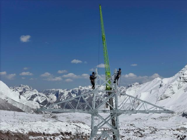 尽管离立夏不足半月,新疆和田地区南部昆仑山深处依旧白雪皑皑,有百余名工人忙碌在电力工程建设一线。