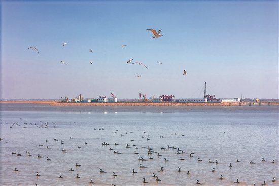据了解,每年有300余种鸟类在此栖息、迁徙,为红滩碧海中的采油小站增添了勃勃生机。