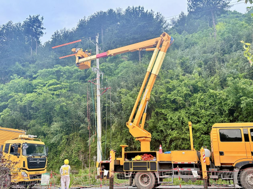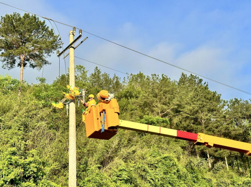 供电员工正在对周中一线改造工程进行作业,提高供电可靠性服务乡村旅游发展。(李杰摄)