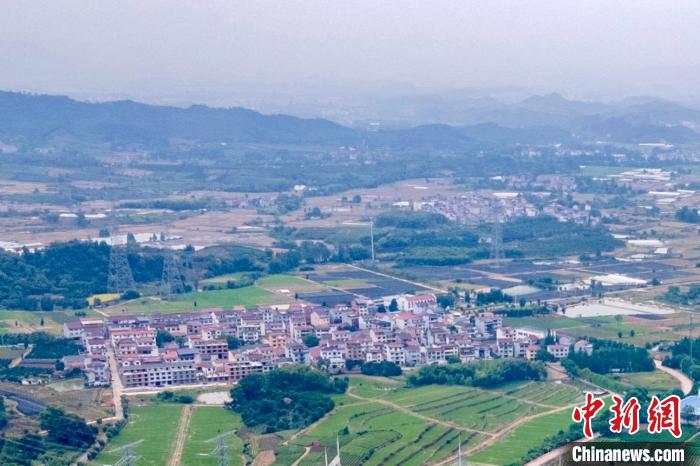 航拍溪洛渡左岸—浙江金华±800千伏特高压直流输电工程金华换流站外的村落。胡肖飞摄