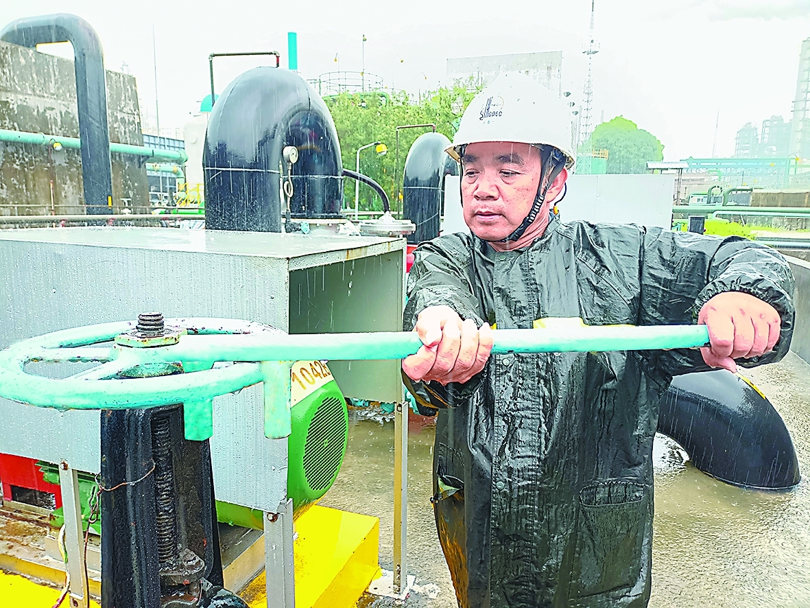 5月19日,销售华南员工开启污水提升泵,确保雨污分流顺畅。 吴小英摄