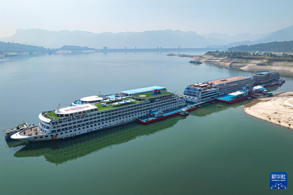 5月23日,客轮停靠在湖北秭归港码头使用岸电(无人机照片)。
