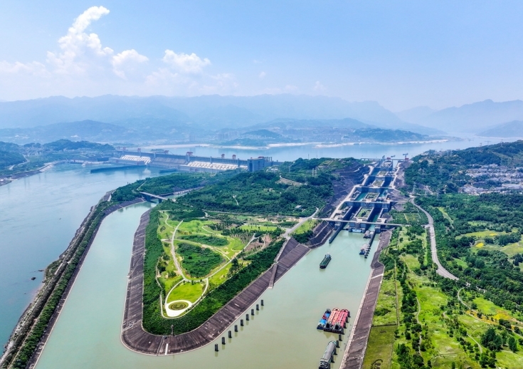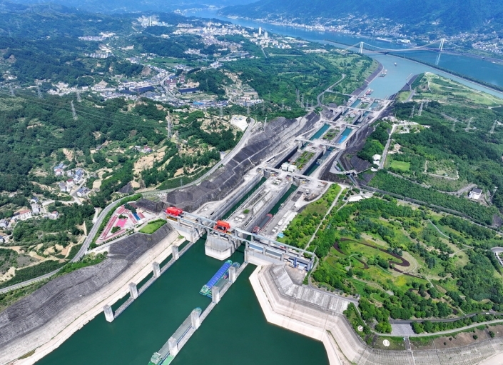 截至5月21日,三峡枢纽货运量达20.81亿吨。三峡工程的建成和蓄水,改善了长江中上游航运条件,三峡船闸和三峡升船机联合运行,形成了“大船爬楼梯、小船坐电梯”的通航格局。 (王罡 摄)
