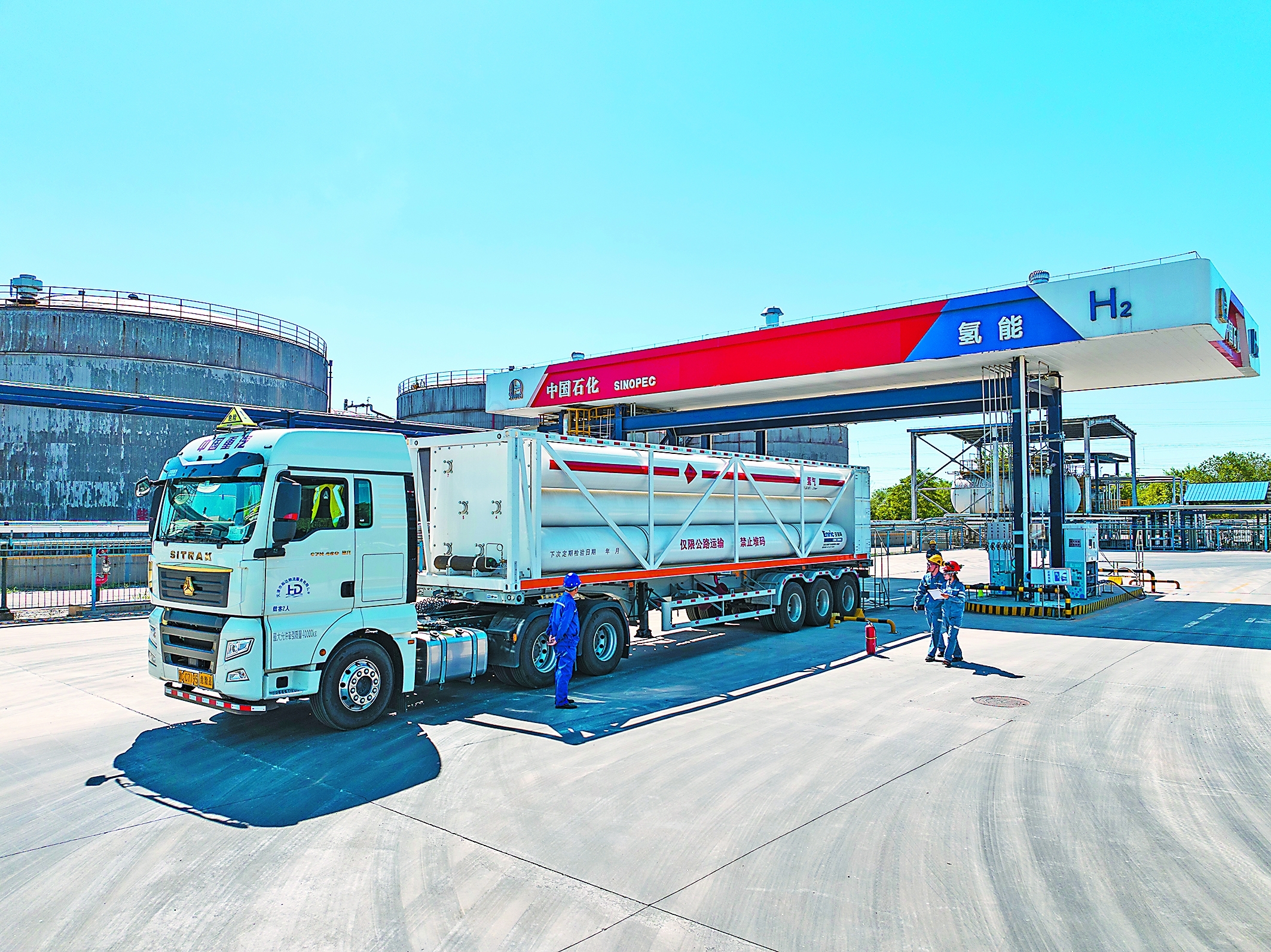 随着天津周边市场对氢气的需求不断增加,天津石化氢气产量逐步增长,目前该公司燃料电池氢装置加氢母站每天约有500公斤燃料电池氢气发往天津石油,稳定供应周边市场。图为近日该公司加氢母站进行氢气充装作业。(董 波 摄 牟新颖 文)