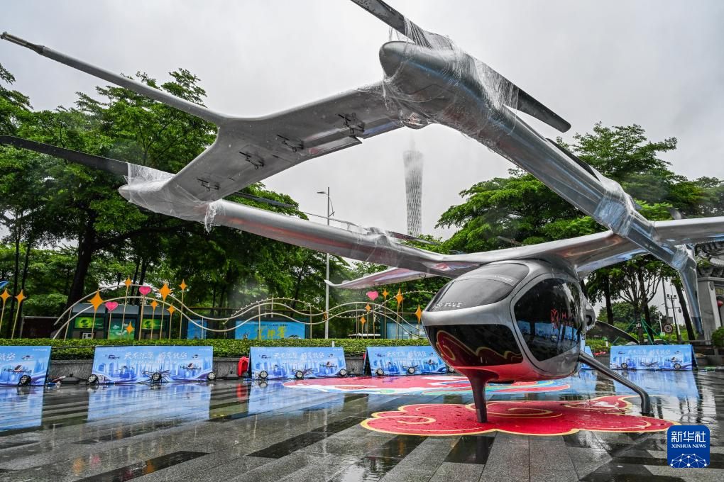 近日,一场低空航展在广州天德广场举行,十余架明星eVTOL(电动垂直起降飞行器)机型集中亮相,进行静态展示。日前广州发布《广州市低空经济发展实施方案》,本次航展是国内低空经济相关企业助力推动广州成为国内首个载人飞行商业化运营城市的积极行动。(刘大伟 摄)