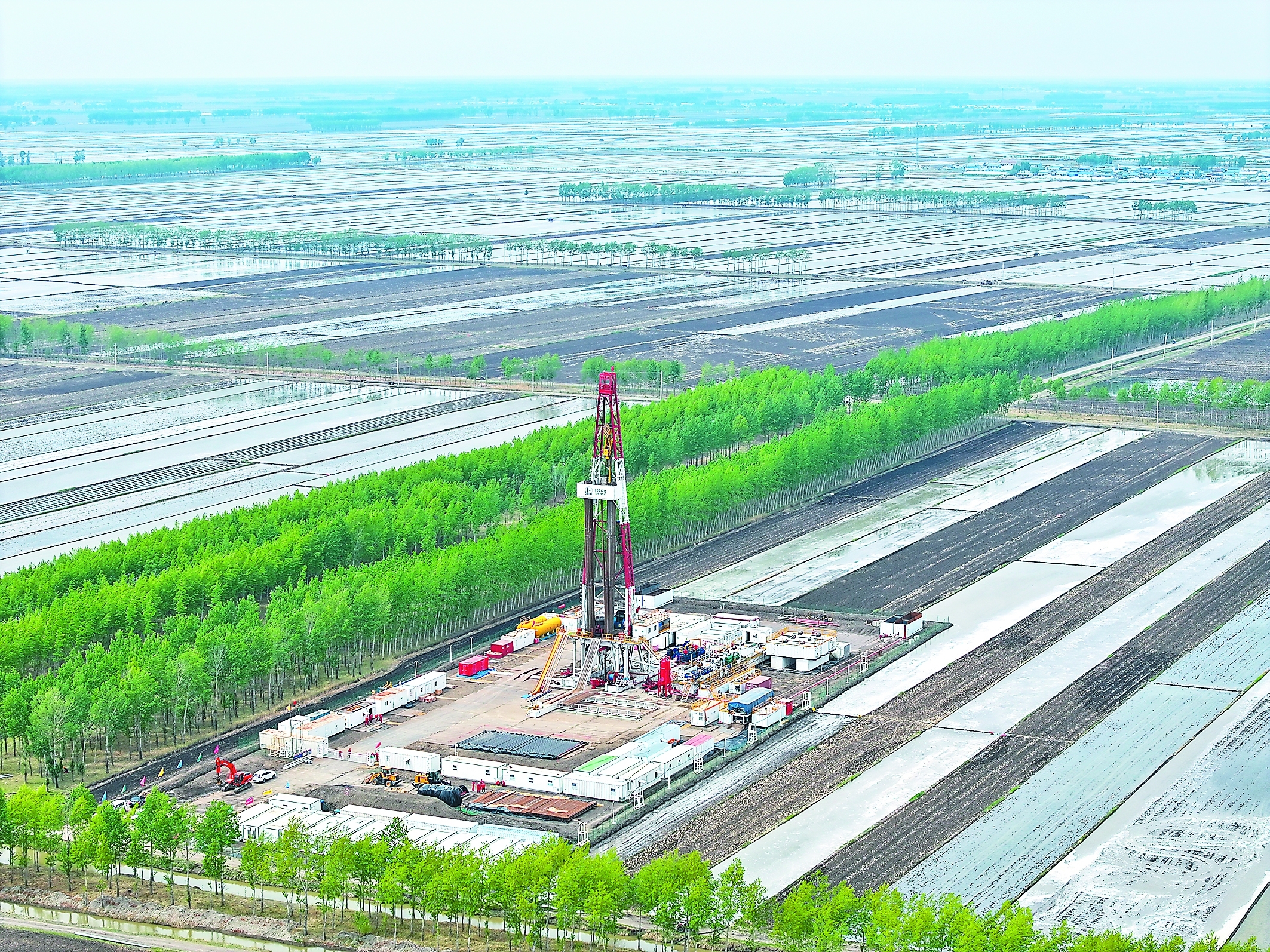 近日,东北油气分公司位于松北新区的探井新胜1井开钻。这是该公司部署在黑龙江新矿权区的首口探井,设计井深4980米,目前正按照工程设计安全高效施工。图为该井钻探现场。(张 凯 摄)