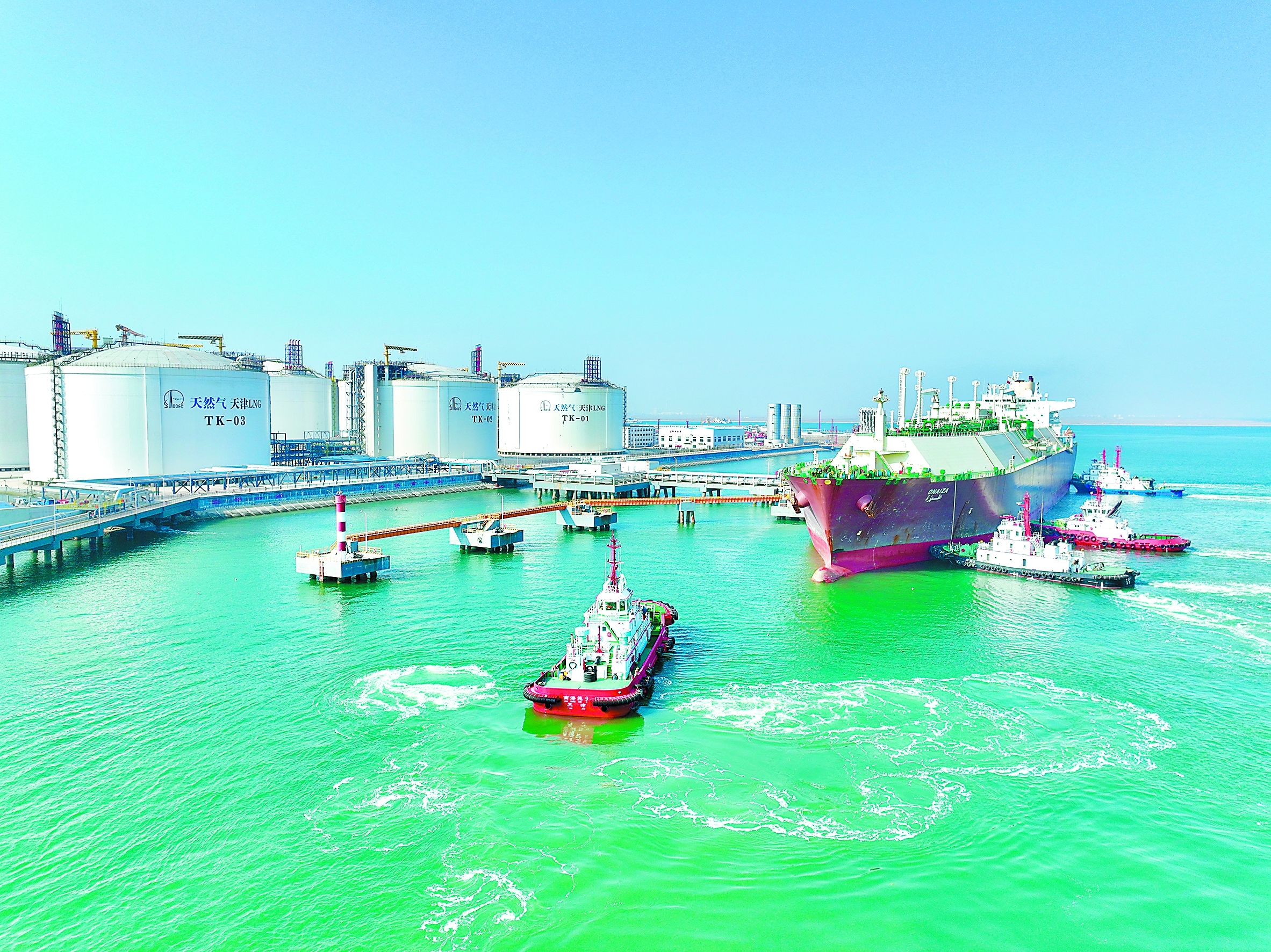图为来自卡塔尔的LNG运输船靠泊天然气分公司天津LNG接收站。王军摄