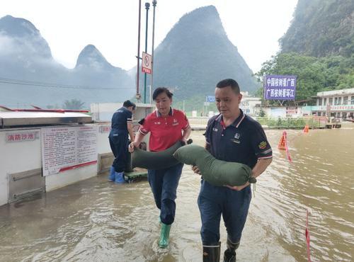 6月14日,广西河池普降暴雨,河池石油部分站点受山洪、暴雨影响后,立即启动防汛应急预案,组织干部员工开展站点排水、物资转移、防汛值守等工作,第一时间处置险情。图为河池石油本部含香加能站员工搬运防汛物资。蒙小成 摄 王一妃 文
