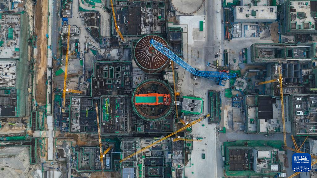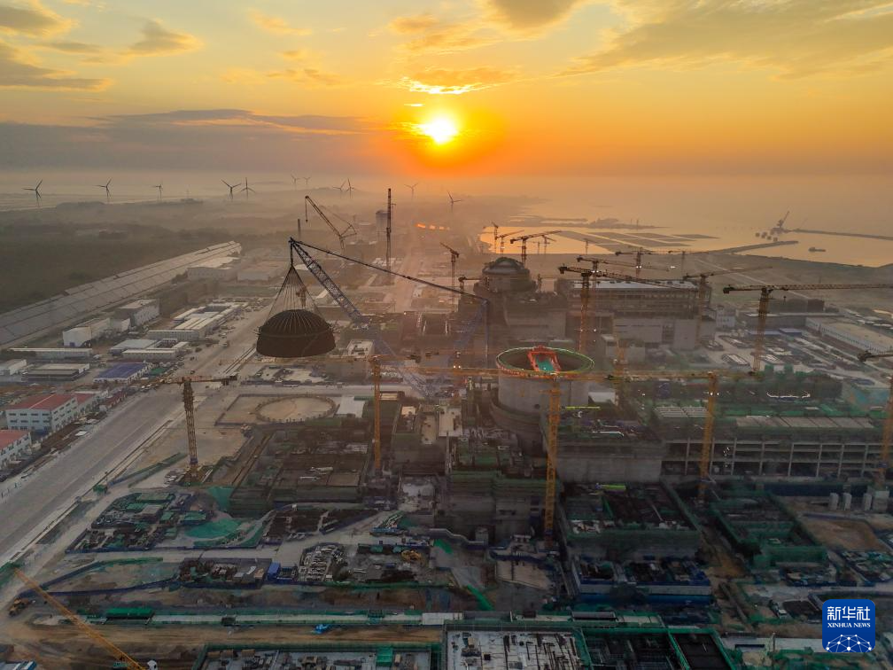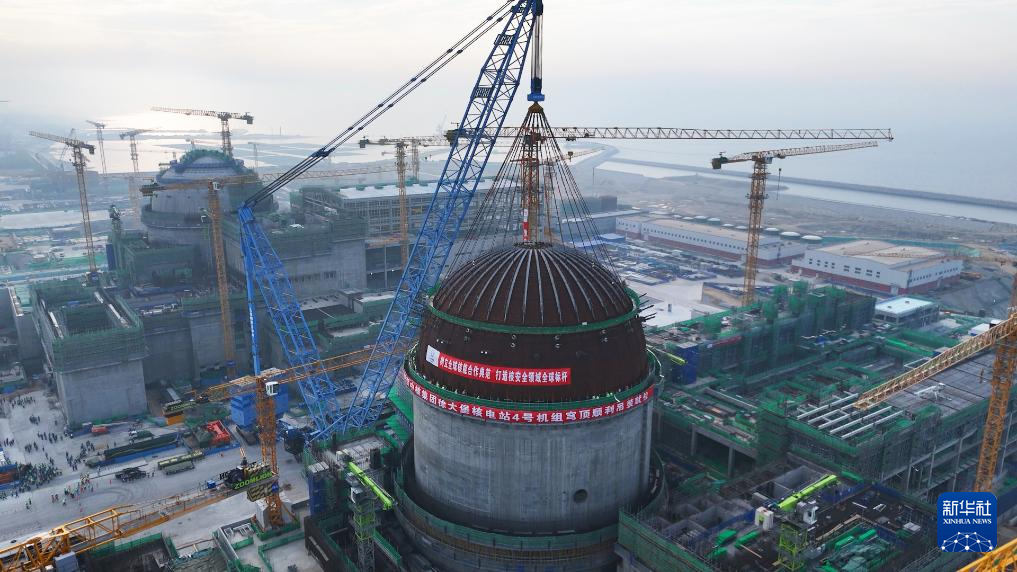请输入图6月18日拍摄的徐大堡核电站4号机组穹顶吊装作业现场(无人机照片)。片描述
