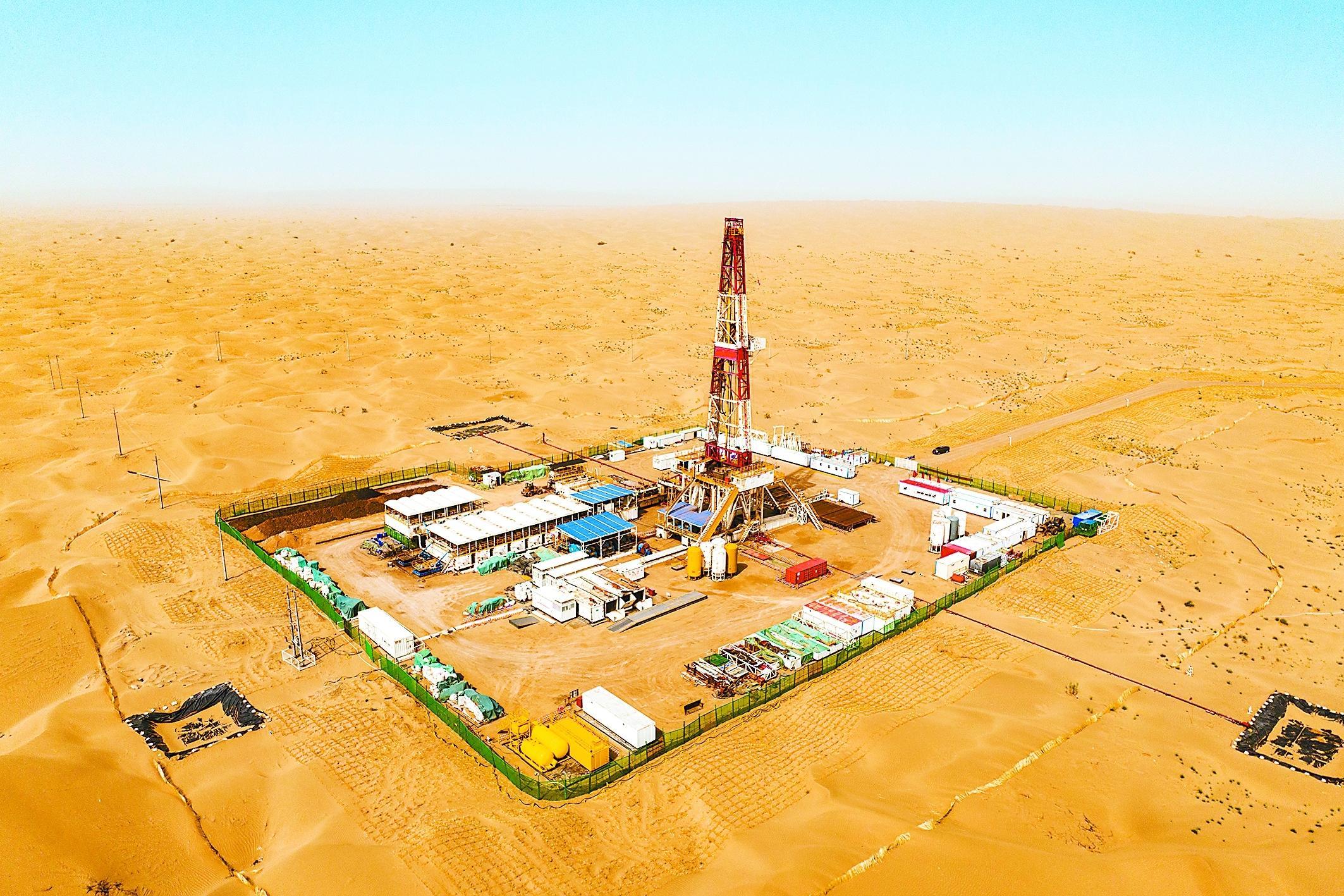 今年以来,西北油田加快勘探部署实施节奏,通过地质工程一体化、甲乙方一体化推进工程技术集成应用,稳步提高效益开发水平,油气产量保持稳中有升态势。上半年,油气产量当量同比增加6.3万吨。图为近日施工中的顺北油气田顺中412斜井。(李学仁 摄 王福全 文)