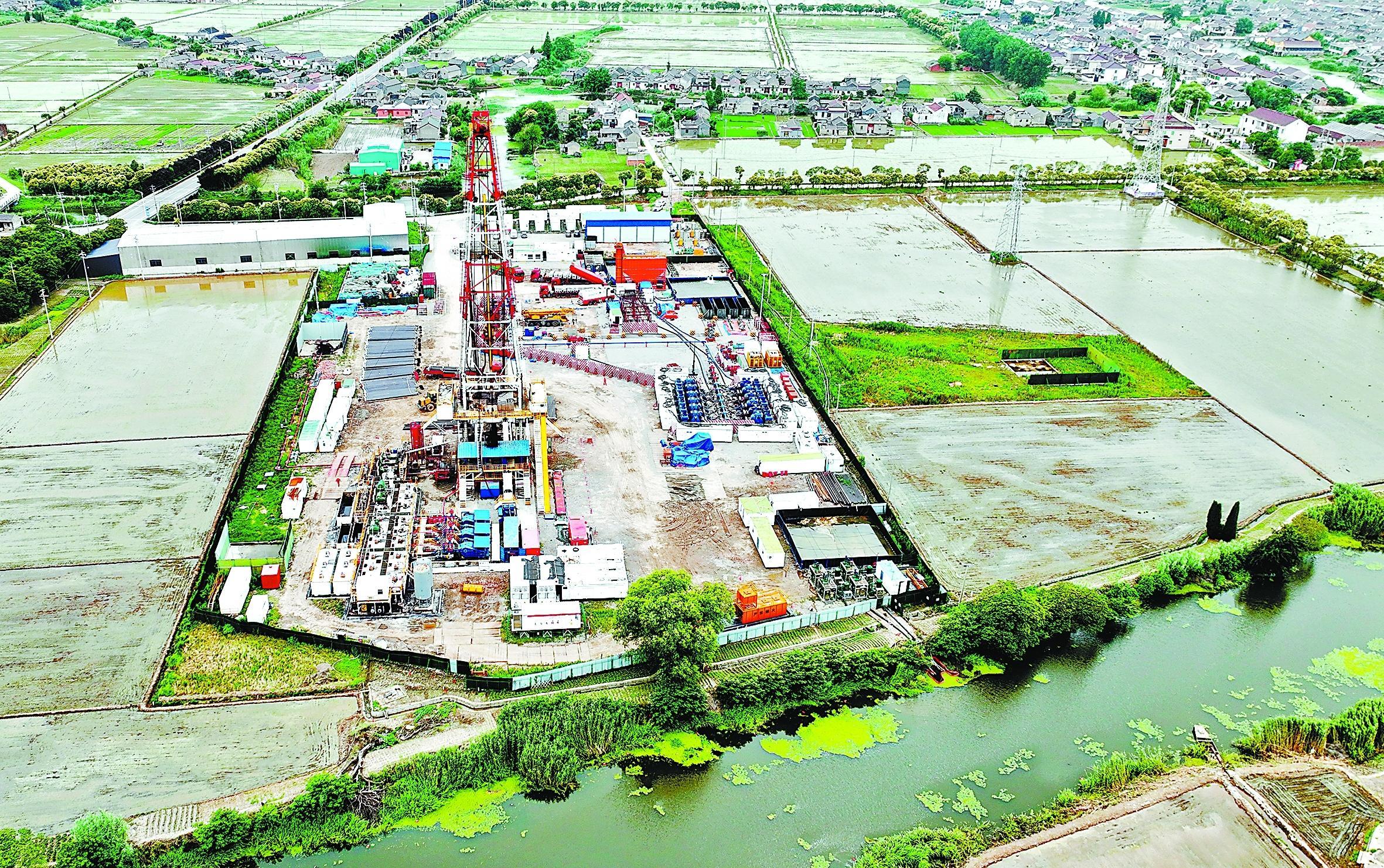 7月2日,华东油气分公司页岩油井溱页1-1S03HF井顺利完井,标志着苏北盆地溱潼凹陷首个页岩油水平井试验井组——溱页1井组先期试验评价井钻探全部完成。试验井组共8口井,已投产5口井,试油试采取得良好效果。 图为溱页1-1S03HF井施工现场。(沈志军 花彩霞 曹建山 )