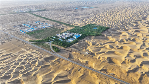 近年来,塔中采油气管理区在开采油气资源的同时,始终坚持绿色发展理念,持续在塔克拉玛干沙漠深处打造出人与自然和谐共生的生态环境。(汪涛 摄)