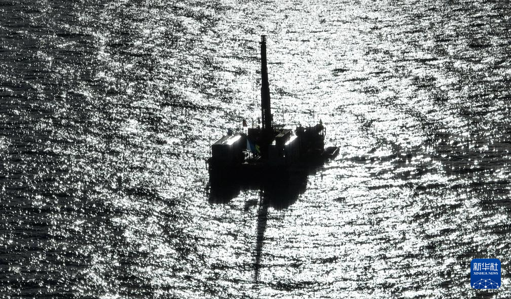 7月12日拍摄的纳木错水上钻探平台(无人机照片)。新华社记者晋美多吉摄