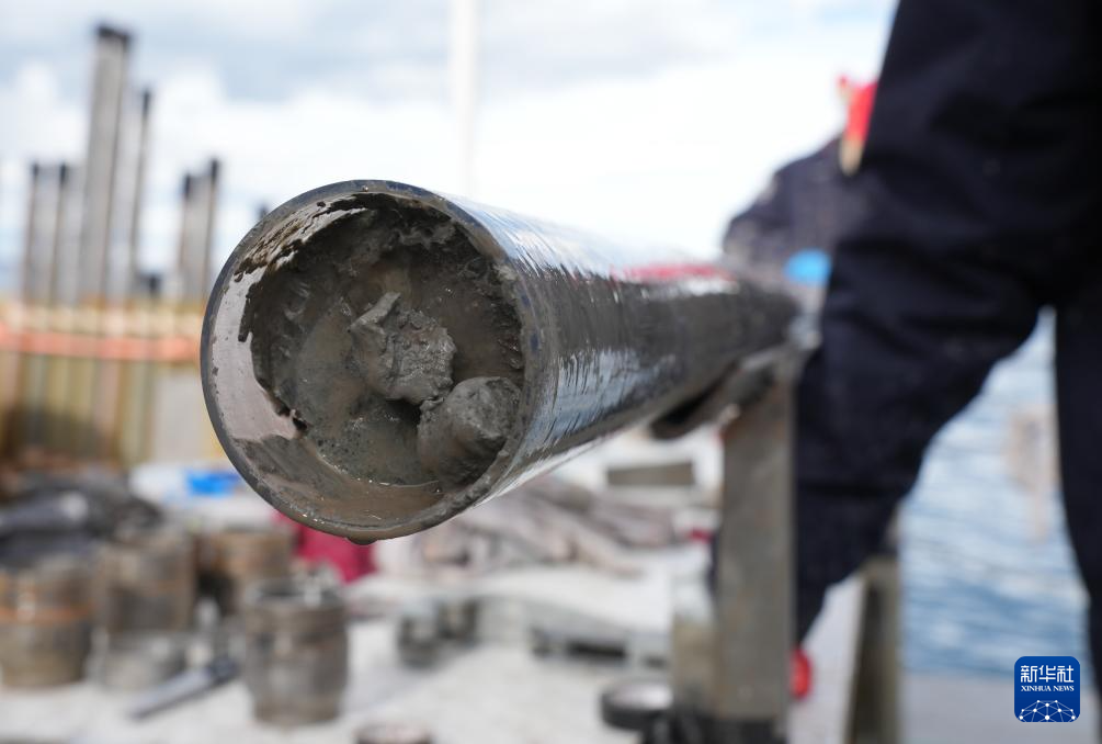 7月12日拍摄的纳木错湖底402.2米深度湖泊岩芯样品。新华社记者晋美多吉摄