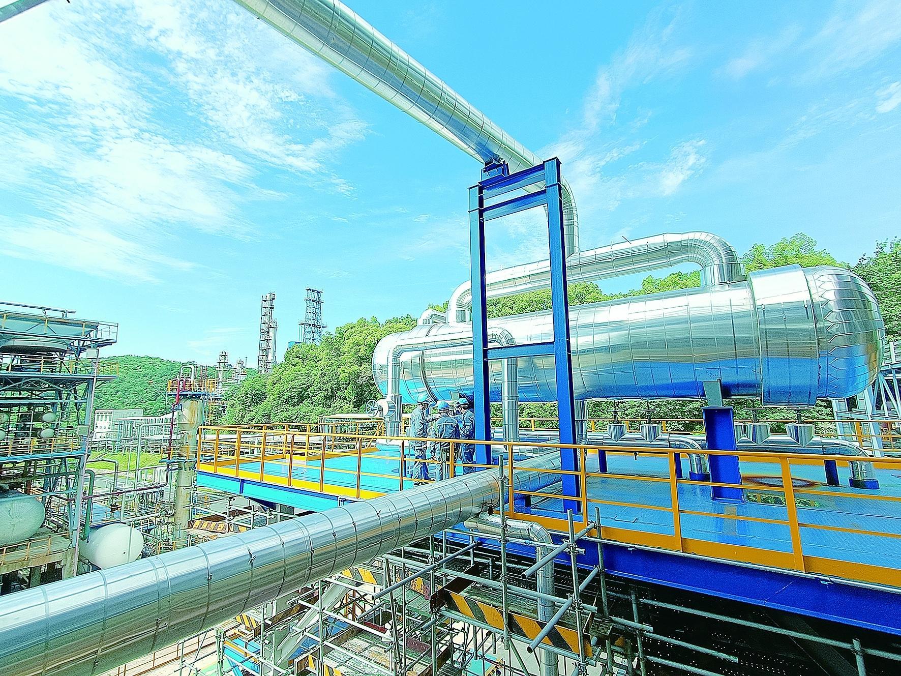 荆门石化烷基化装置中间再沸器节能项目5月底投用以来,装置蒸汽消耗量进一步降低,有效带动炼油能耗下降,节约蒸汽成本,实现预期目标。图为7月17日该装置操作人员检查中间再沸器自控阀。蒲红霞 摄 邹 勇 肖 鑫 文