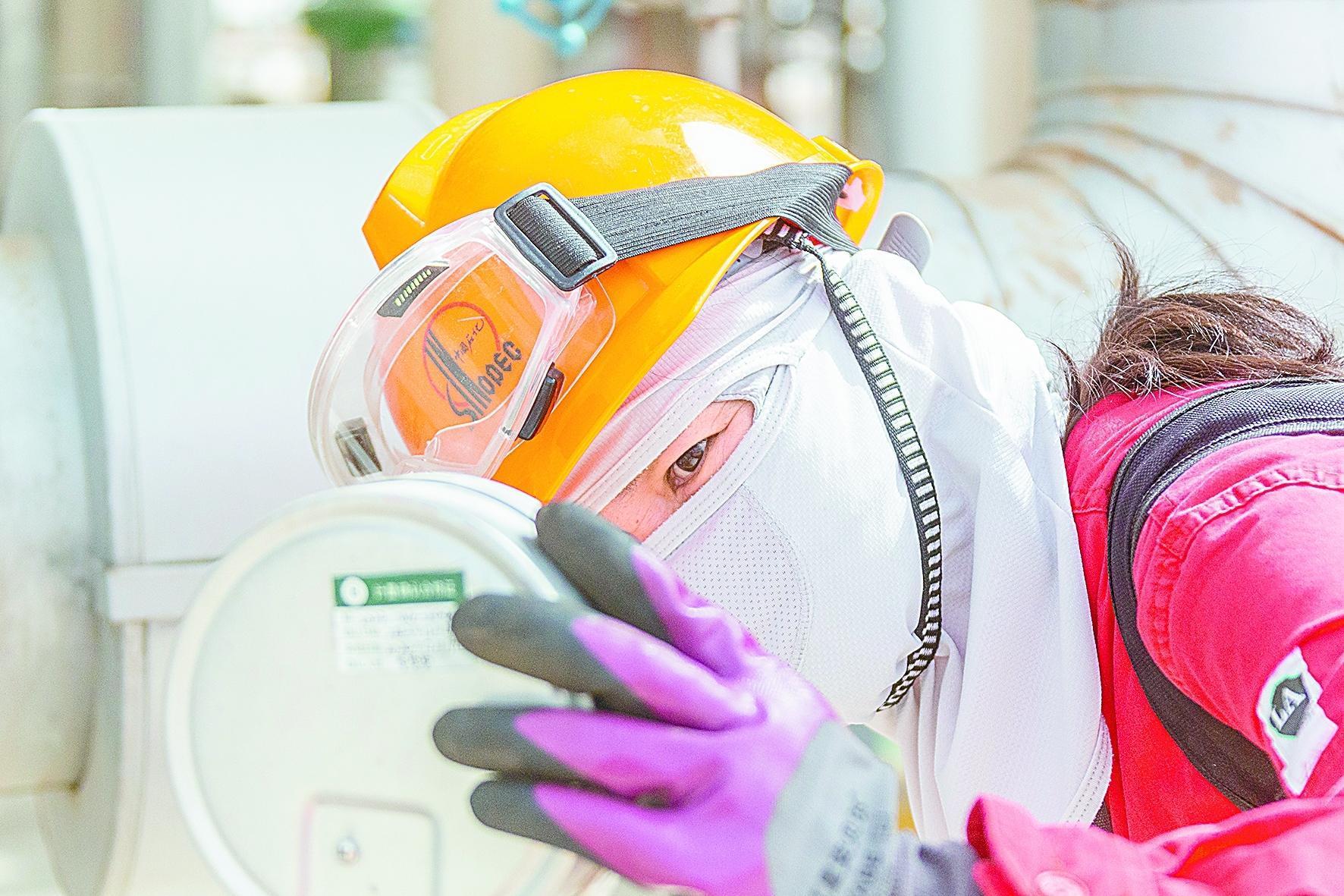 西北油田采油四厂积极应对,制定《夏季生产运行方案》,强化夏季“八防”措施,及时提供防暑用品,采取错时作业、现场防护等措施,有效应对高温酷暑给生产装置和现场人员造成的不利影响,确保生产现场安全高效运行。图为7月15日,顺北油田联合站的女工戴着防晒面巾巡检。当天,顺北油田地面温度超过50摄氏度,巡检人员加强个人防护,有效应对高温天气。(李学仁 图/文)