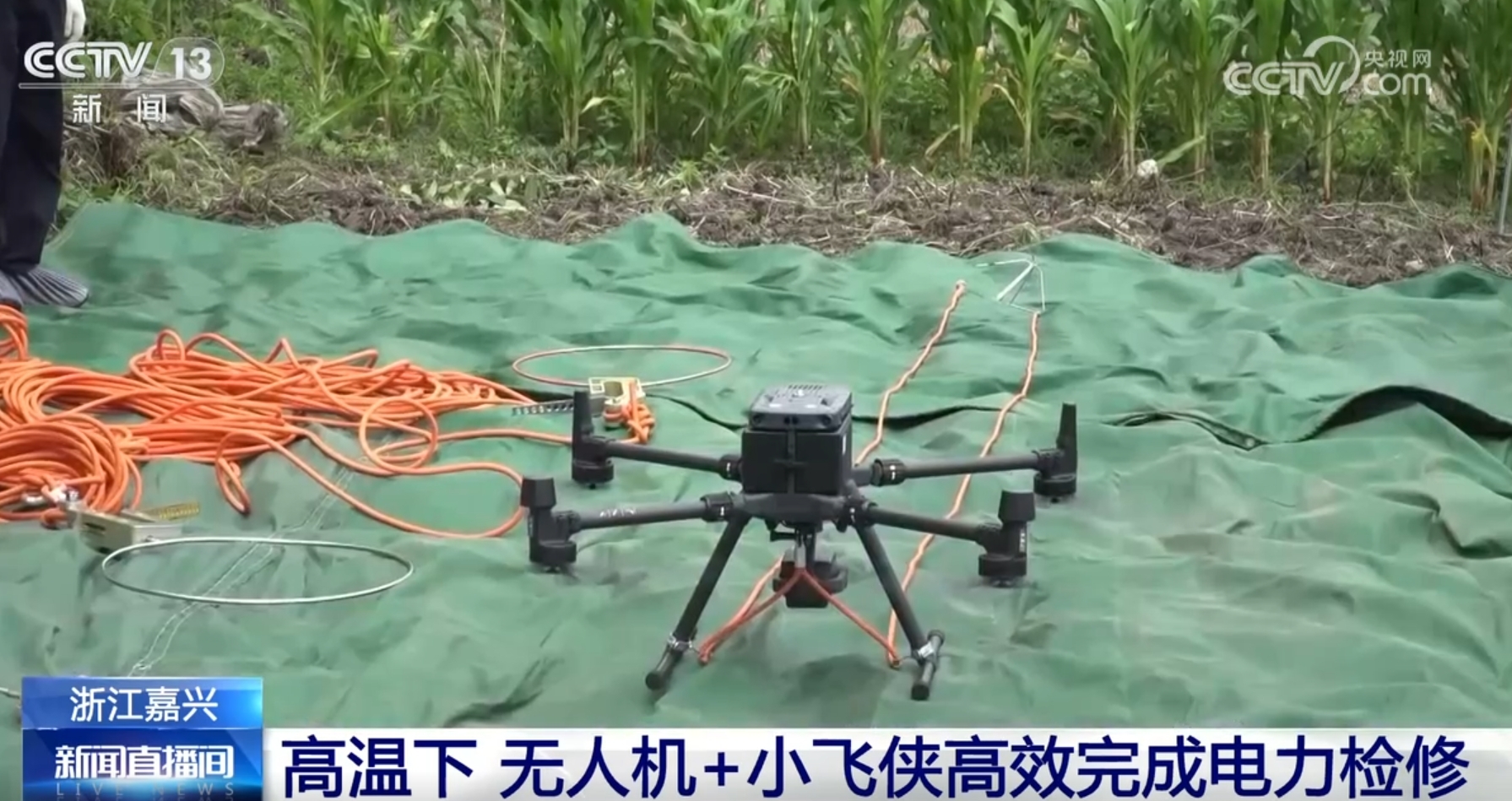 在浙江嘉兴,这几天的最高气温都在38℃以上,为了保障用电安全,电力运维人员加密了电路检修频次。如何在高温天气下高效又安全地完成作业?运维人员采用了“无人机+小飞侠”的方式,“小飞侠”是一个类似简易电梯的电动升降机,它能把作业人员送至高百米的空中作业,不仅节省检修人员的体力,还能缩短检修时间。