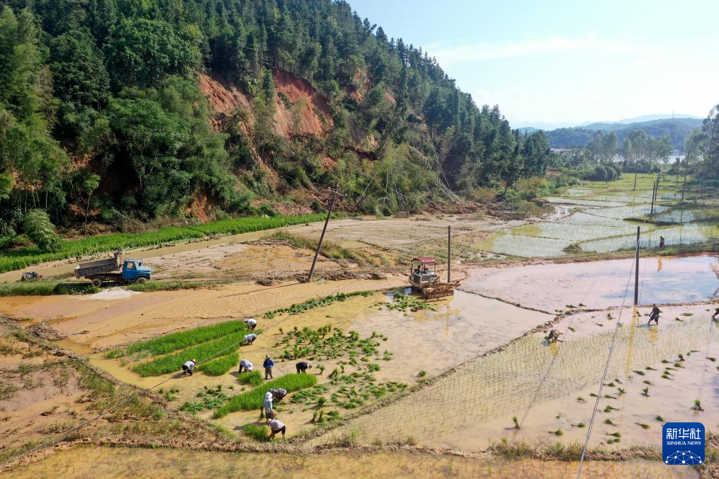 近期,受台风“格美”影响,湖南省资兴市遭遇极端强降雨天气,当地13个乡镇均出现暴雨或特大暴雨。目前,各方力量积极做好抢险救援工作,抢修因灾受损的水、电、路等基础设施,同时对部分受损农田进行翻耕,抢插补插晚稻,加快恢复生产生活秩序。(陈思汗)