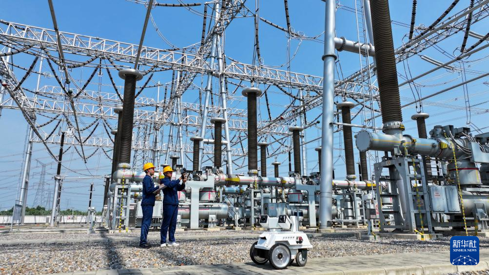 8月9日,在安徽省滁州市南谯区,电力工人在500千伏同乐变电站进行智能巡视检查。