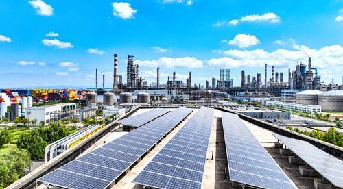 青岛炼化大力推进光伏发电项目建设,因地制宜利用厂房屋顶、停车场、闲置坑塘等资源,提升绿色能源供给能力。前8个月,光伏发电项目累计发电425.06万千瓦时,同比增长140.7%,可替代标准煤1300吨,减排二氧化碳4000余吨。图为青岛炼化厂区内分布式光伏发电项目。刘强 摄