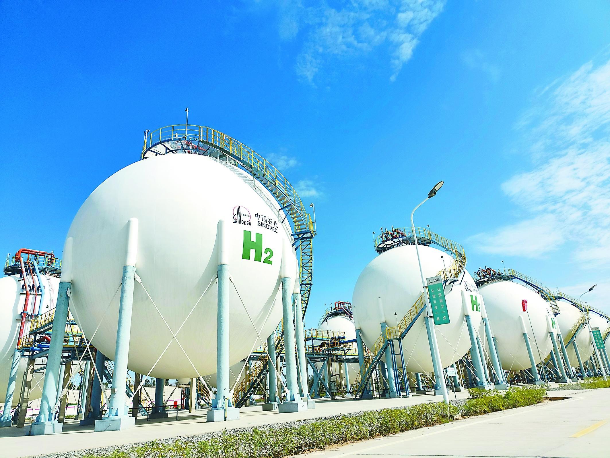 新星公司新疆库车绿氢示范项目全面投产一年来,新星新疆绿氢公司持续加强设备管理,抓好生产运行,实现安全平稳生产,氢纯度达99.999%。随着该项目在全国乃至全球影响力的提升,新星新疆绿氢公司市场开发工作也正向下游延伸。图为蓝天映衬下的储氢罐群。 蔡廷永 摄