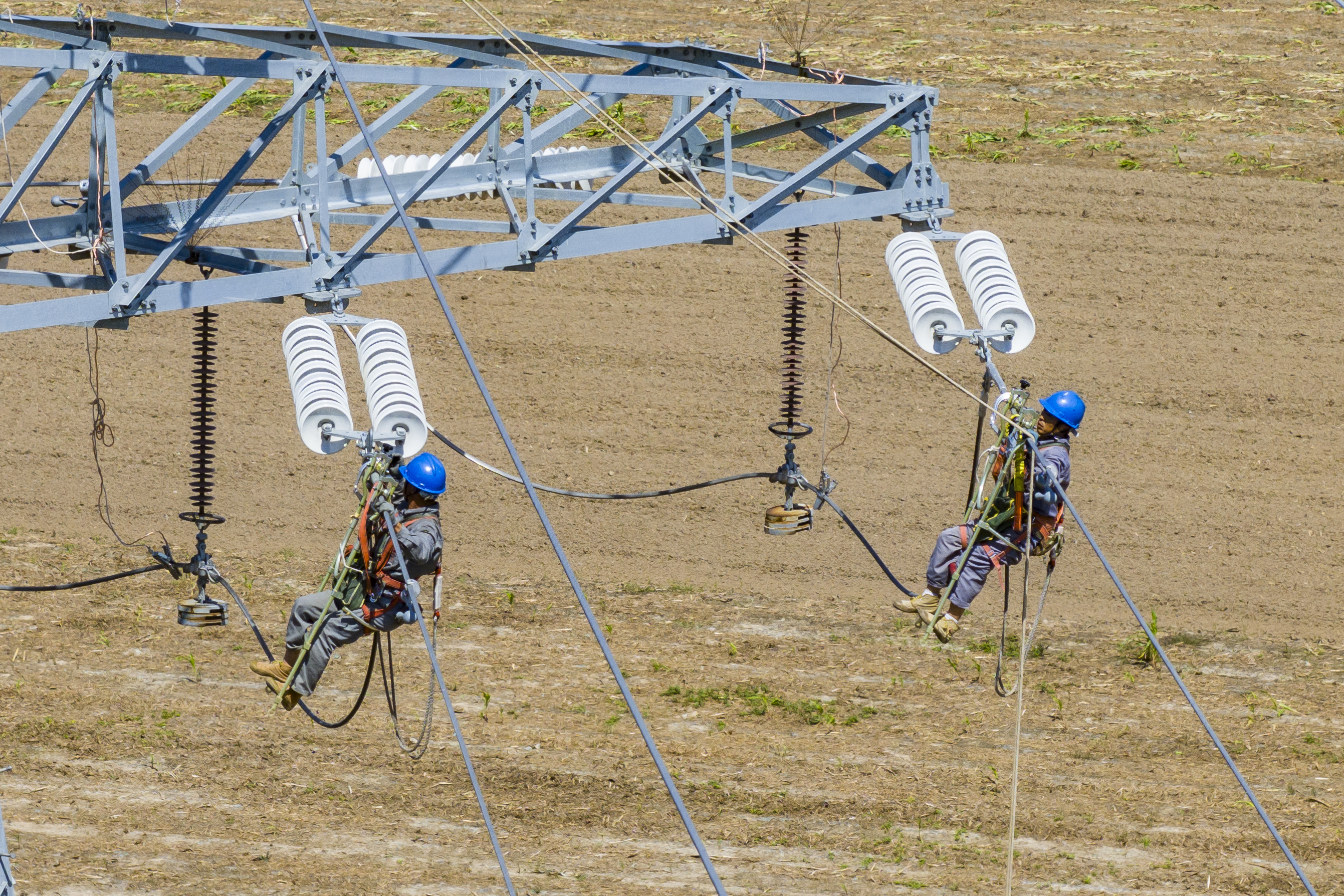 中国能源新闻网讯(曹庆升)9月23日,江苏邳州苏能电力有限公司施工人员在宿羊山镇110千伏水兴9P8线006至007号铁塔之间开展安装相间间隔棒工作,进一步提高线路防范恶劣天气造成的线路跳闸风险,确保线路在国庆佳节及秋收秋种安全可靠供电。
