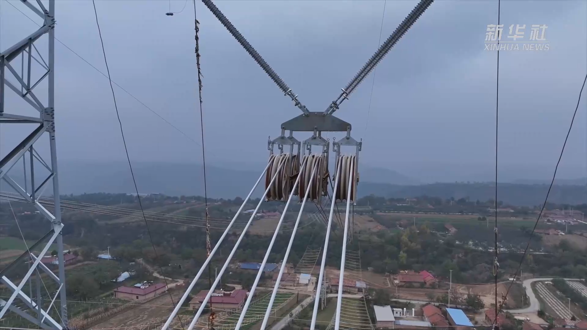 10月13日10时许,在甘肃省庆阳市西峰区,随着导线通过最后一组滑车,陇东—山东±800千伏特高压直流输电线路工程甘肃段全线架通,较原计划提前一个半月。(张智敏 王铭禹)
