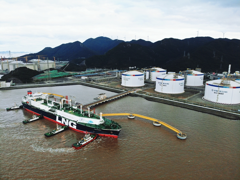 11月20日,“青龙”号LNG船如期抵达中国海油宁波“绿能港”接收站,满载着6万余吨LNG靠泊接收站码头,为天然气安全保供夯实基础。