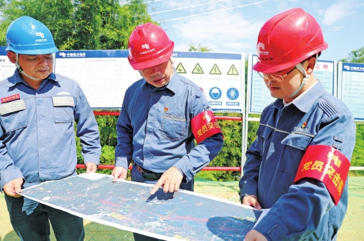 党员突击队精心策划,仔细部署跨江线路施工安排。