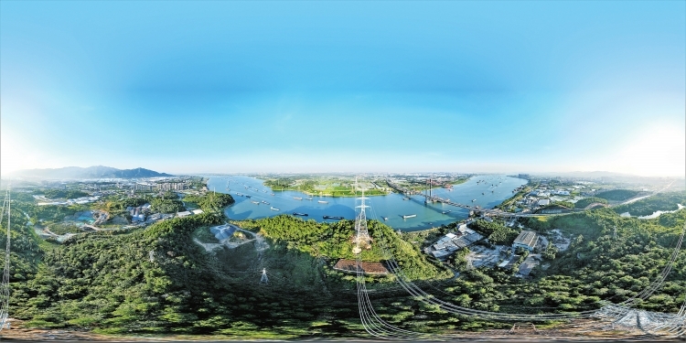 500千伏博贺电厂3、4号机组接入系统工程跨越西江航道大景。