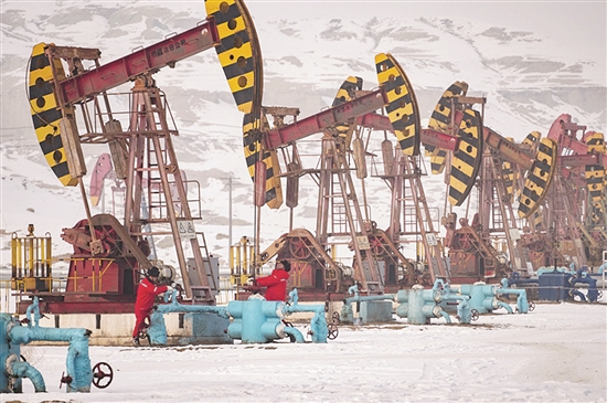 图为风城油田作业区风城采油一站采油六班员工正在巡检。