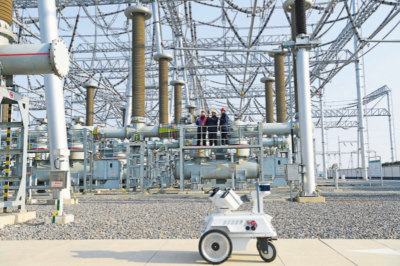 1月1日,在安徽滁州500千伏同乐变电站,国网滁州供电公司运维人员使用5G智能机器人巡检变电站内设备。该机器人搭载红外测温仪、可见光高清摄像机、环境传感器等装备,可实现24小时不间断自动巡检、自动识别、智能预警。