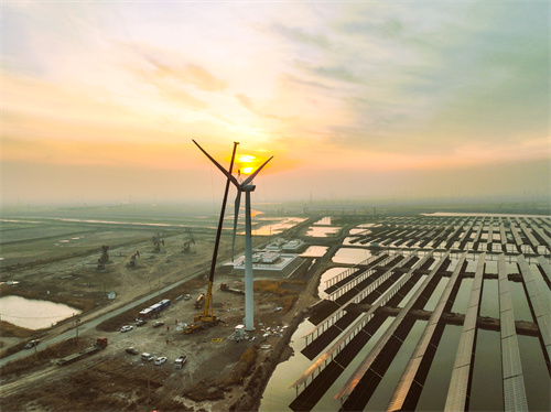 1月4日17时,在冀东油田高75平台现场,冀东油田首台低风速小型风机完成装机。自此,这个平台将实现风、光、储与油气同频共振,确保能源供应清洁稳定可靠。