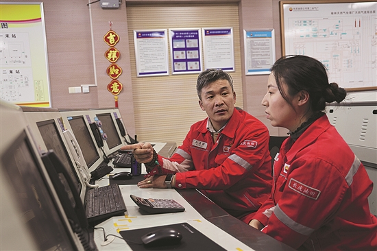 为守好咽喉枢纽,榆林天然气处理厂始终将安全平稳供气作为所有工作中的重中之重。在这个冬天,这里的员工对抗严寒,组织力量对361台重点设备、60条管线加密巡检频次。持续降温使生产现场管线的风险大大增加,巡线工作量比平时多出一倍。负责设备维护的维修班班长李峰只要一有空,就要对陕京线、末站联络线及回注井管线、火炬等进行巡线,对设备仪表进行检查。特别是在雨雪天气里,厂站里总有他们穿梭忙碌的身影。