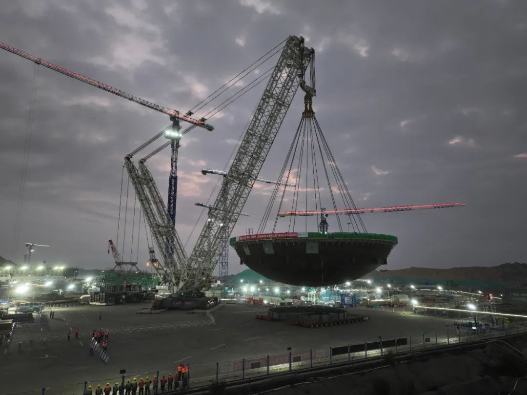 4月9日7时56分,中广核广东陆丰核电项目1号机组首个大型模块——钢制安全壳(CV)底封头在3200吨履带吊车的牵引下顺利吊装就位,这是1号机组自FCD以来实现的又一重大里程碑,标志着核岛反应堆厂房主体结构施工全面启动。