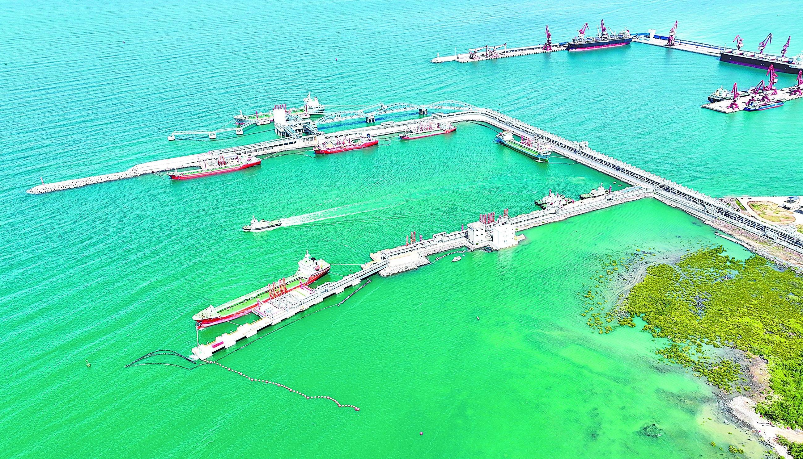日前,“海鑫油619”号轮船在海南炼化成品油码头2号泊位完成作业,装载超1万吨海南炼化生产的成品油前往新加坡。今年以来,该公司持续加大拓市扩销力度,发挥成品油码头进出口枢纽优势,进一步开拓新加坡等海外市场。图为成品油装载作业现场。(吴淑汕 摄 韩二龙 文)