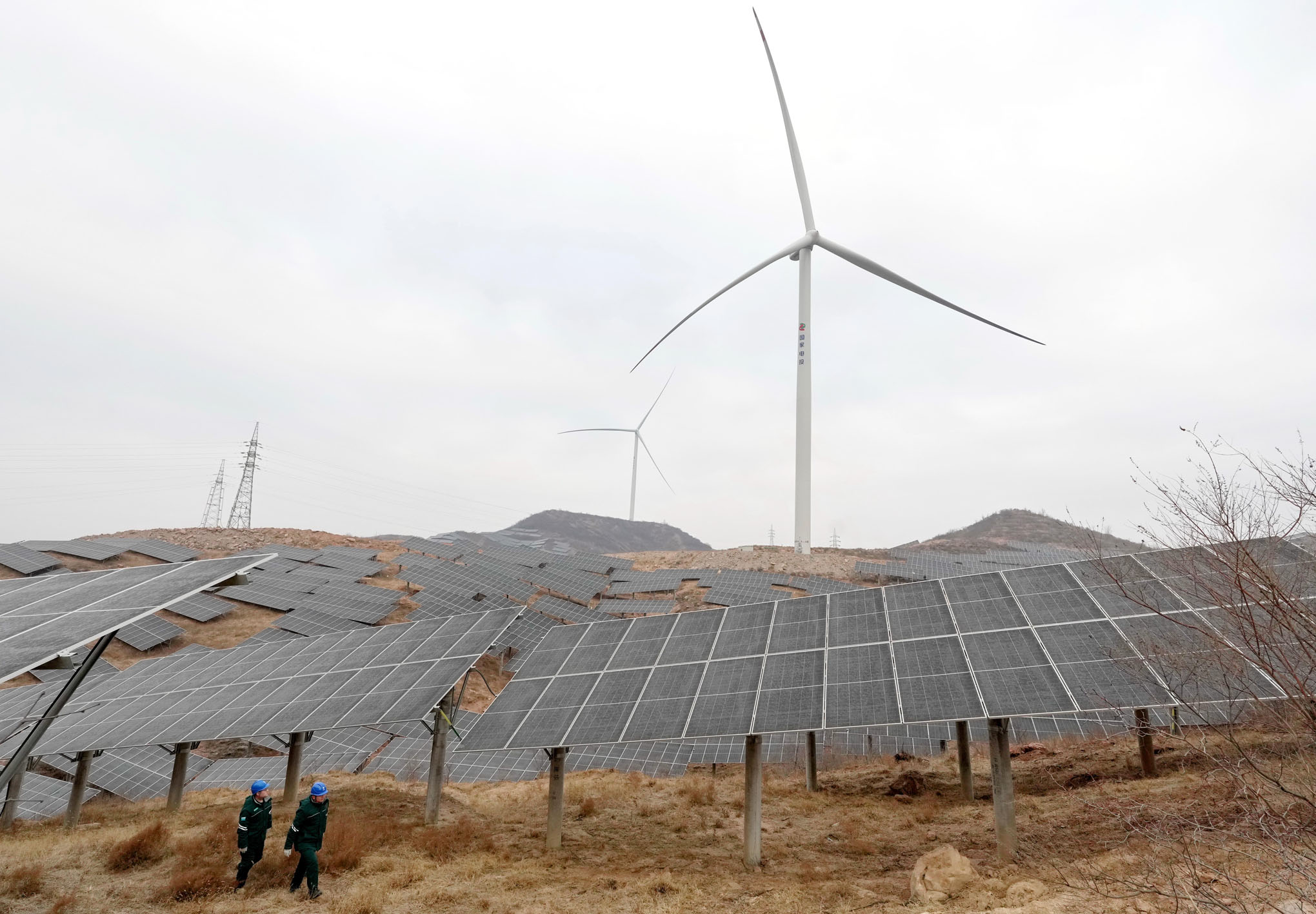 1月17日,国网赞皇县供电公司的工人在辖区院头镇曹家庄村附近的“风光互补”发电场巡检并网线路。近年来,河北省大力推动清洁能源开发利用,根据地域特点有序推进风电、分布式光伏、集中式光伏及“渔光互补”“农光互补”等新能源项目建设,助力绿色低碳发展。据国网河北省电力公司介绍,截至2025年底,该省风电和光伏发电装机并网容量达到13303万千瓦,占统调装机容量的68%。(杨世尧)