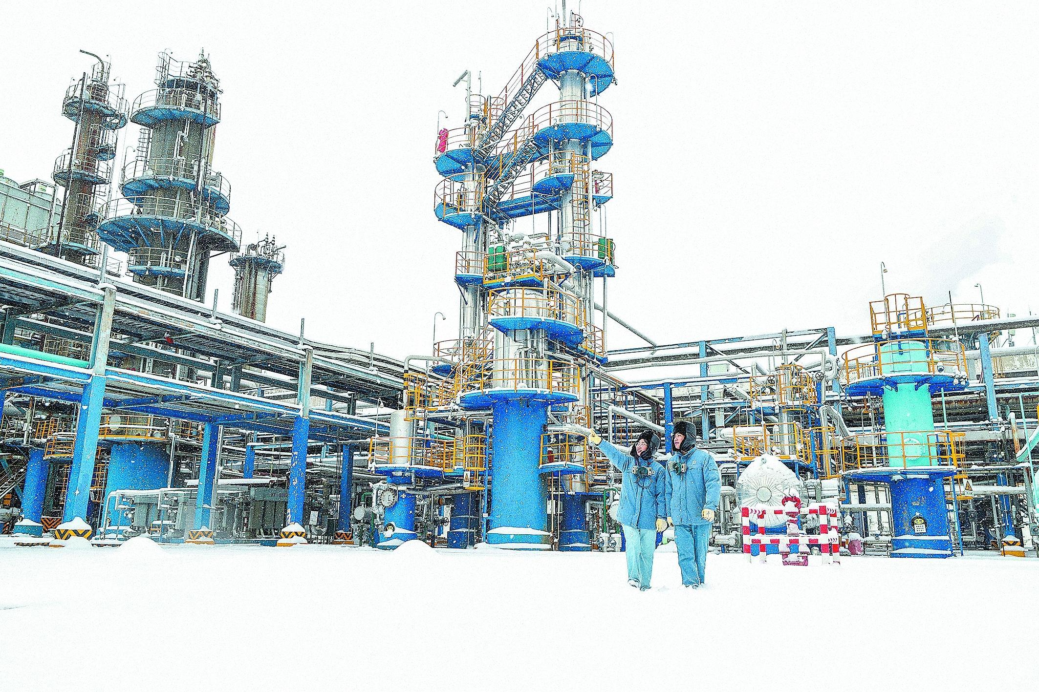 图为1月17日中压加氢装置员工在巡检。李雪 摄 赵雨菲 文